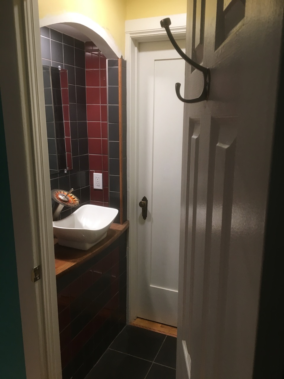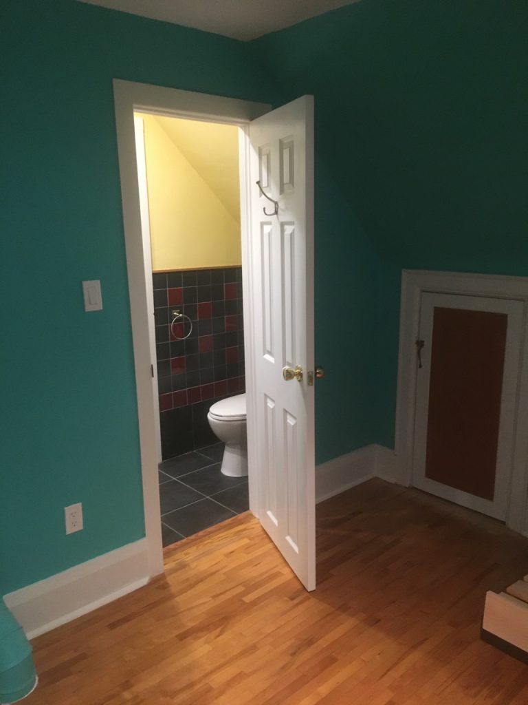 This new bathroom was installed in a closet between two bedrooms on the upper floor. With a toilet and sink. Before After Categories: Before After