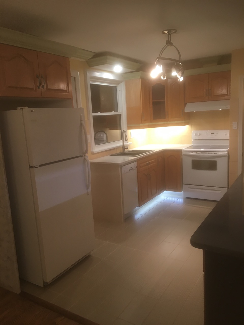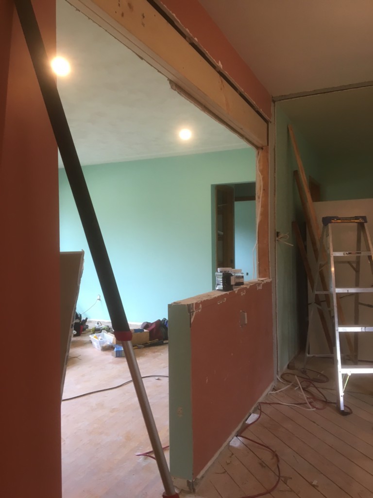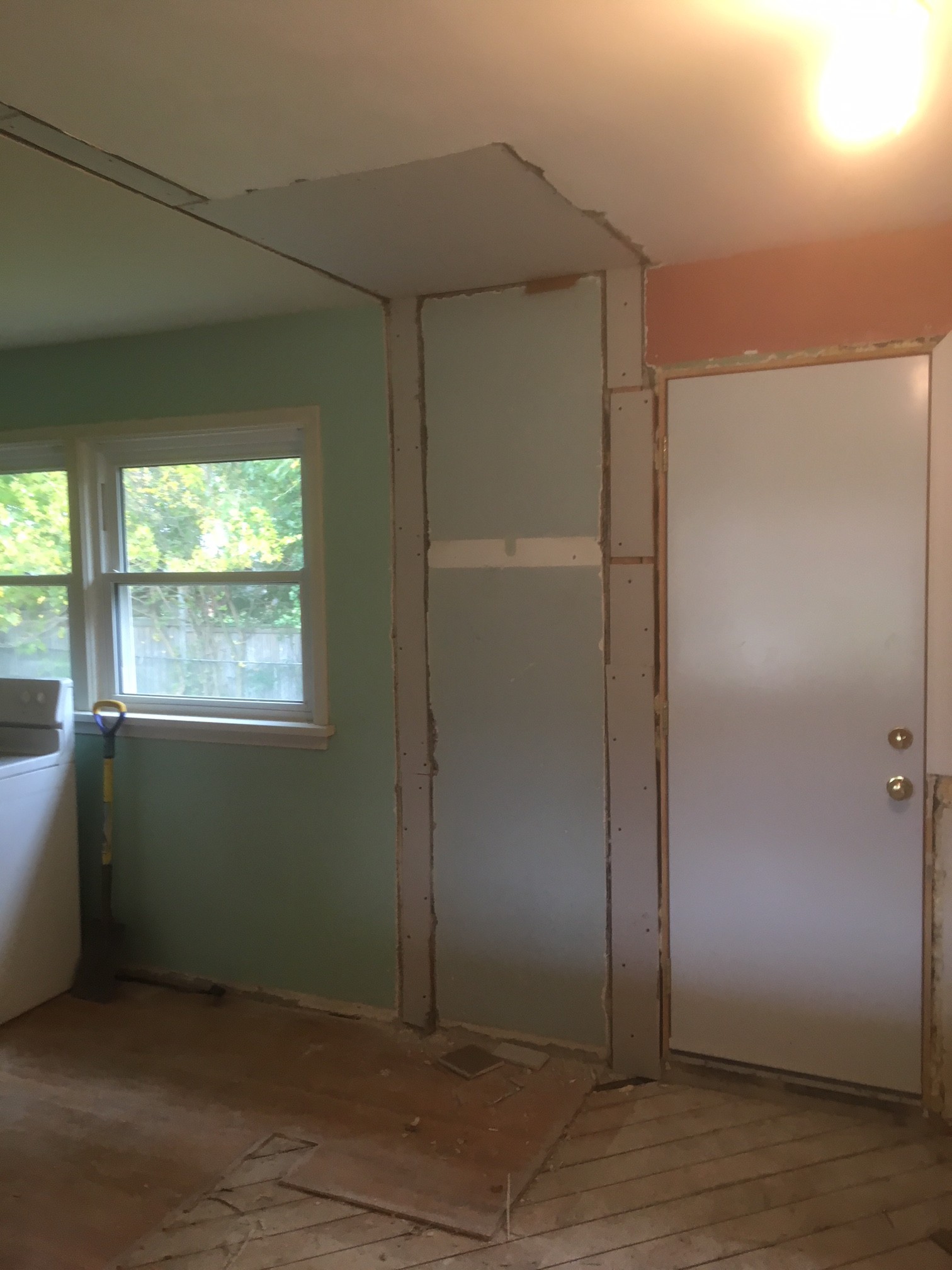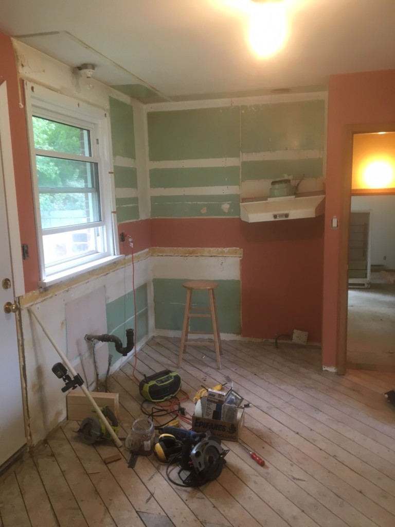 Before and after photos of this renovated kitchen. We added the sit-up bar and rebuilt the entire room.